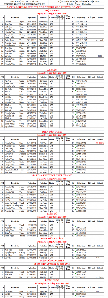 DANH SÁCH HỌC SINH THI TỐT NGHIỆP THÁNG 03/2019 CÁC CHUYÊN NGÀNH
