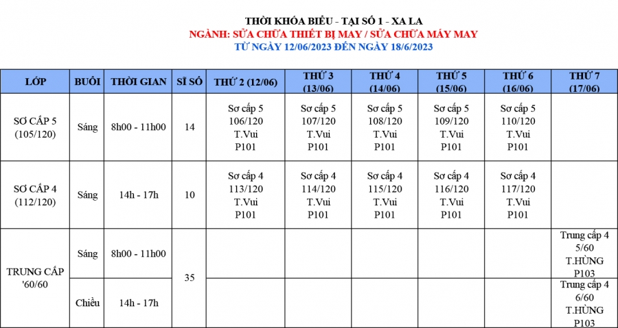 Sinh viên Cao đẳng K5,6 chú ý lịch học XE ĐIỆN