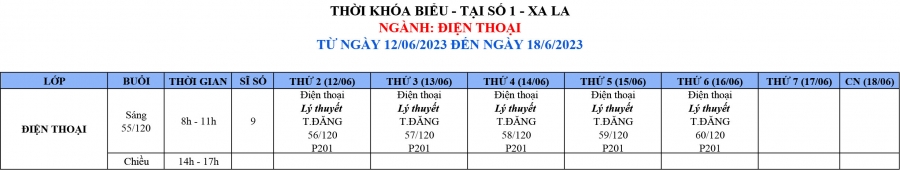 Thông báo lịch học