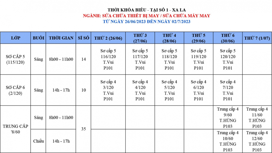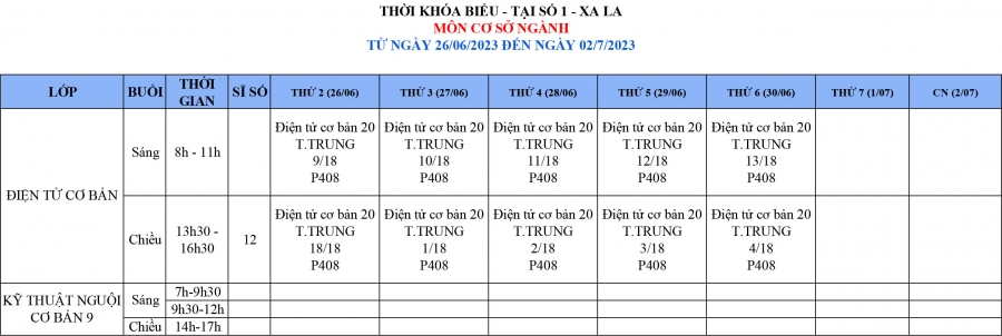 THÔNG BÁO LỊCH HỌC TỪ NGÀY 26/6/2023 ĐẾN NGÀY 2/7/2023