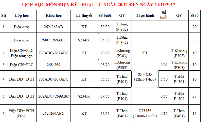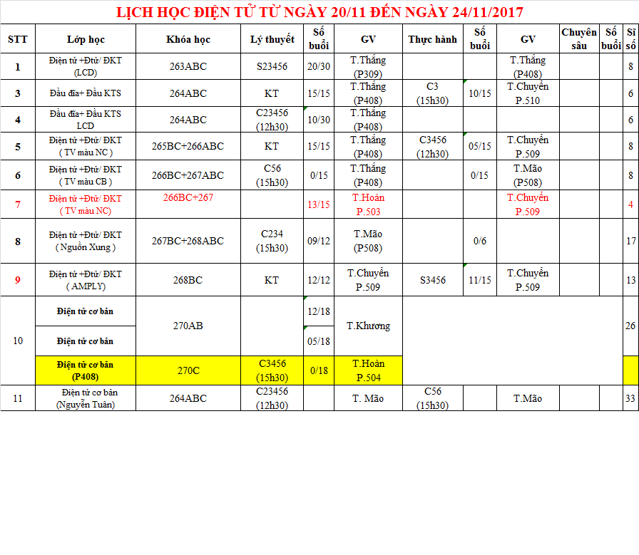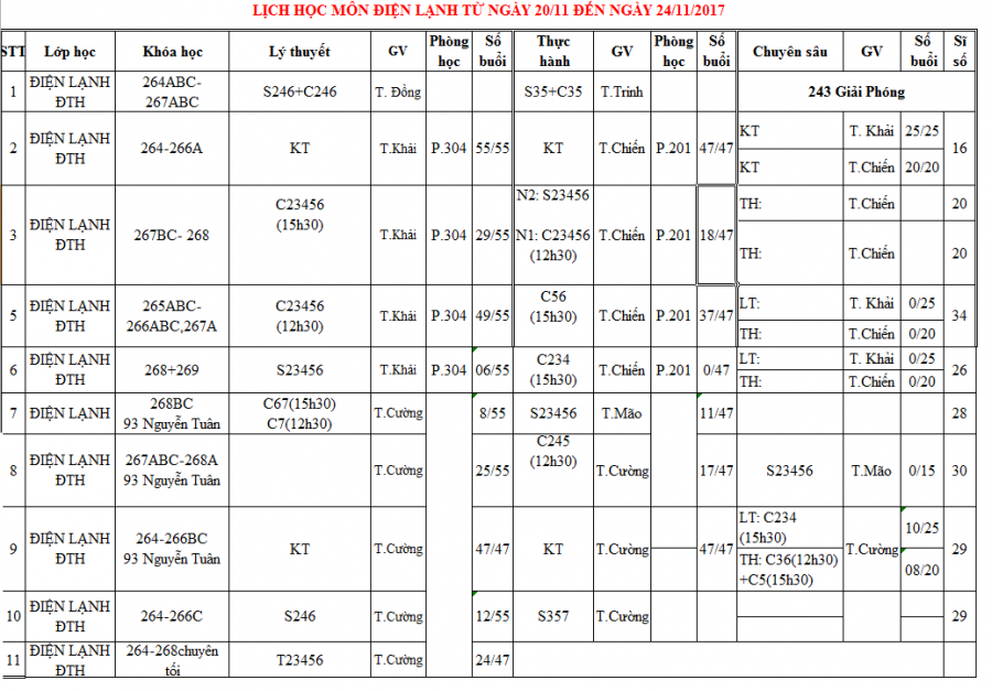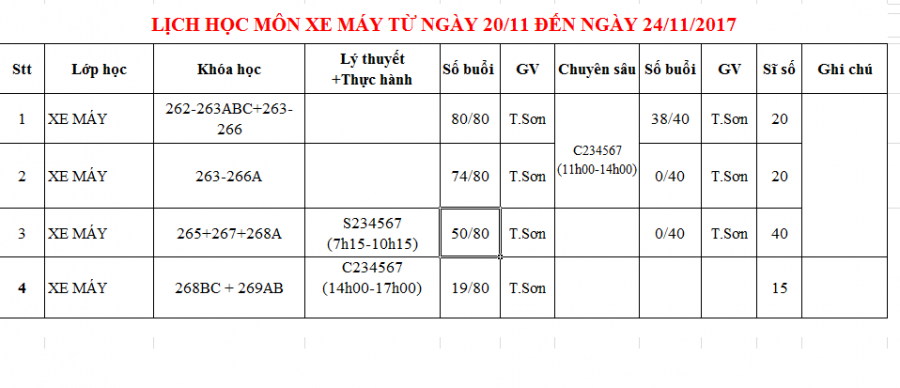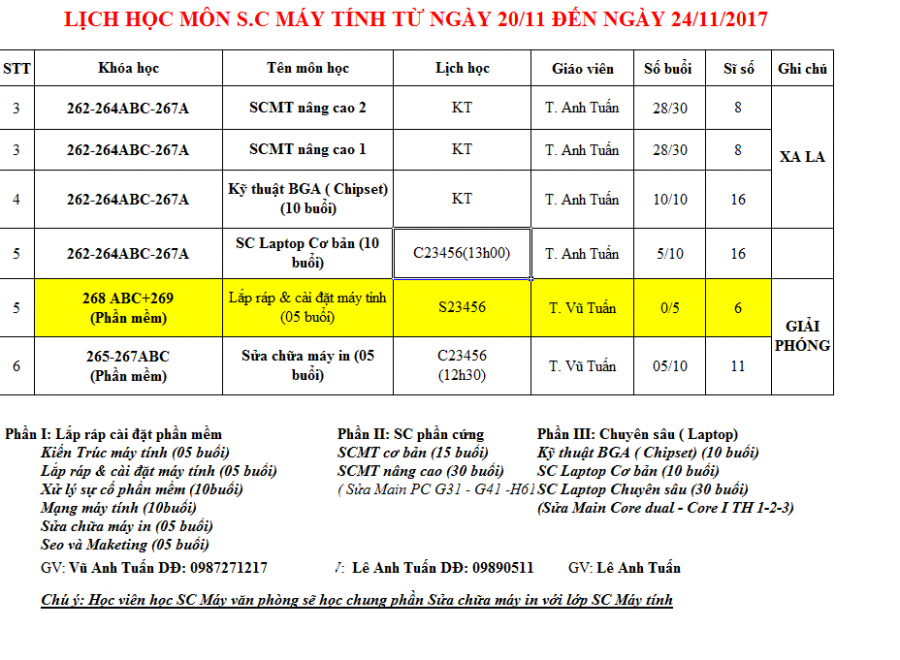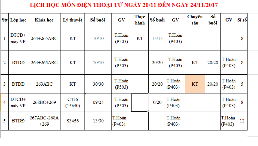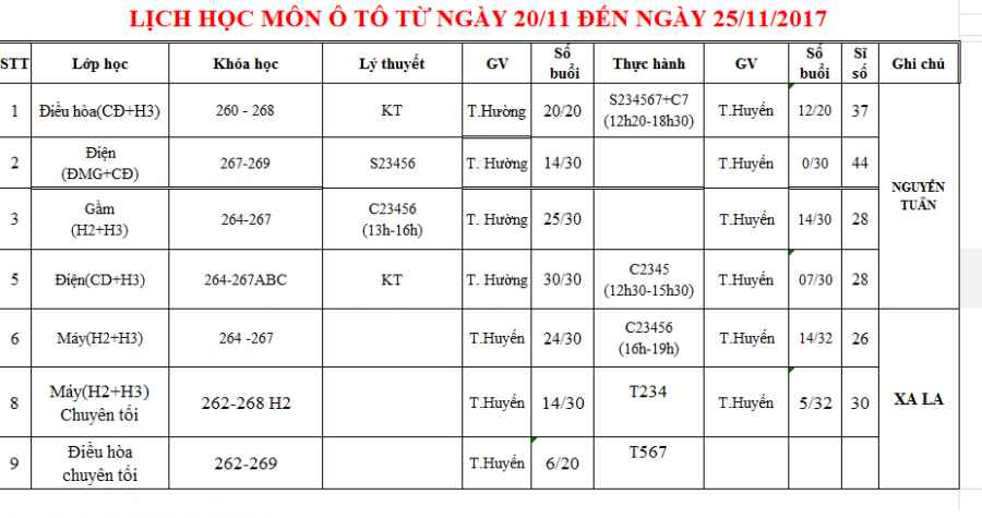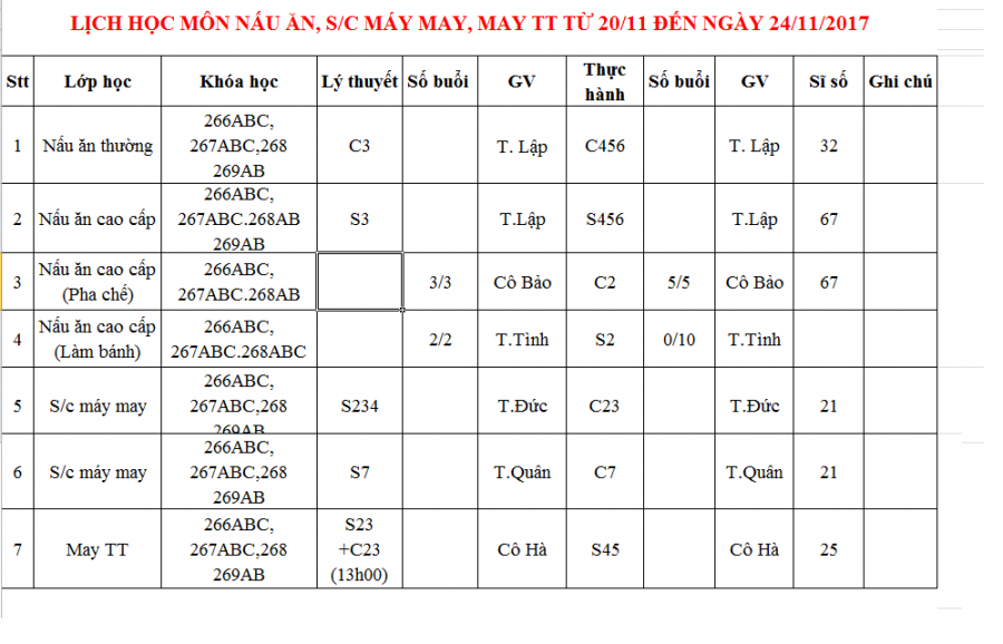 Thông báo lịch học