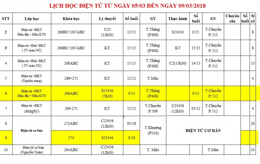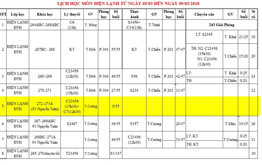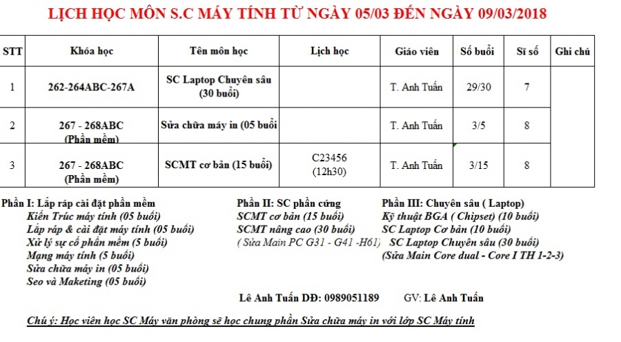Thông báo lịch học