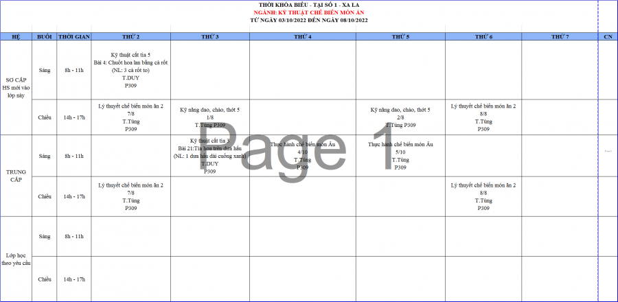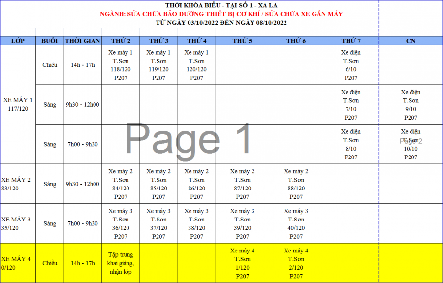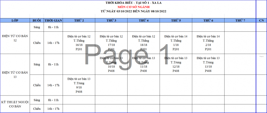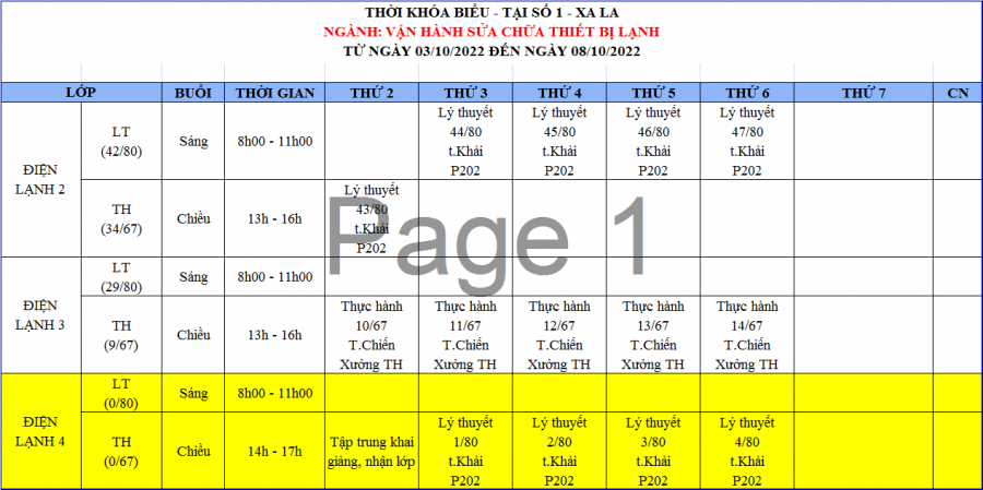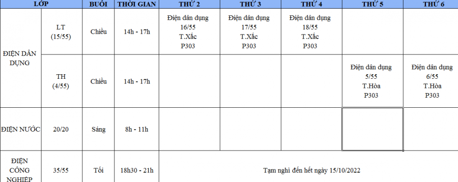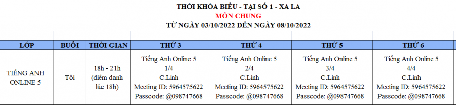 THÔNG BÁO LỊCH HỌC TỪ 03/10/2022 ĐẾN 08/10/2022