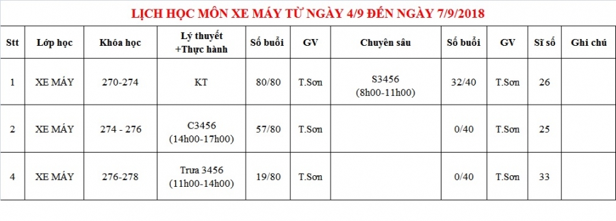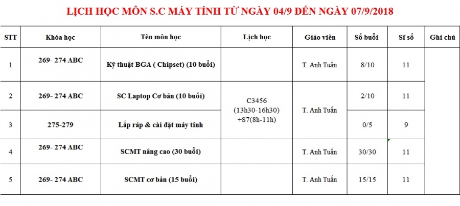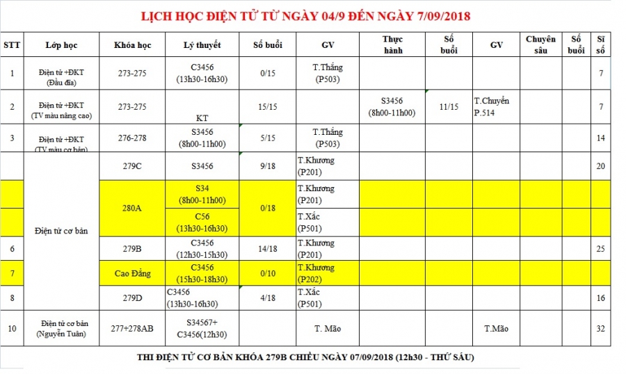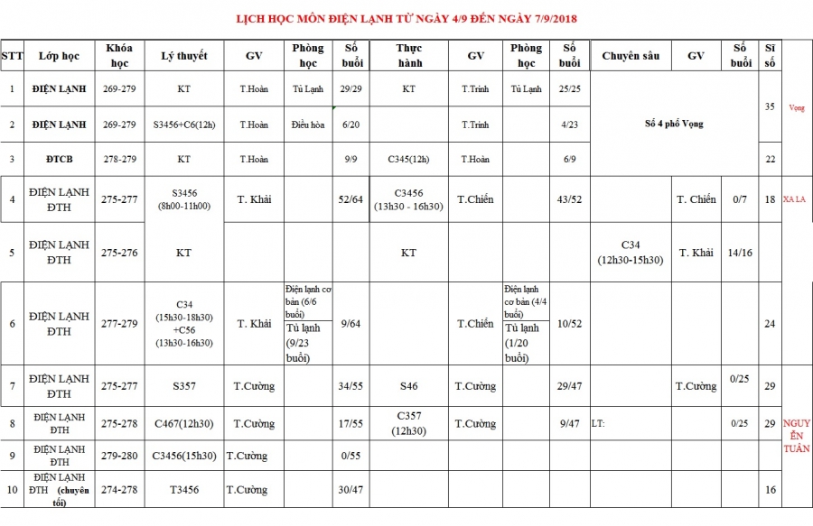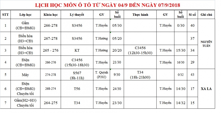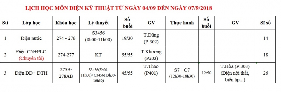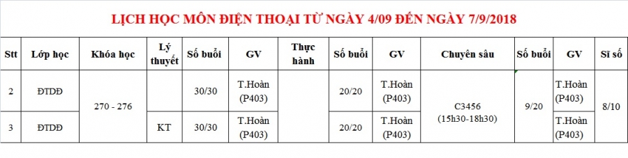 PHÒNG ĐÀO TẠO THÔNG BÁO LỊCH HỌC TỪ 04/09 ĐẾN 07/09/2018