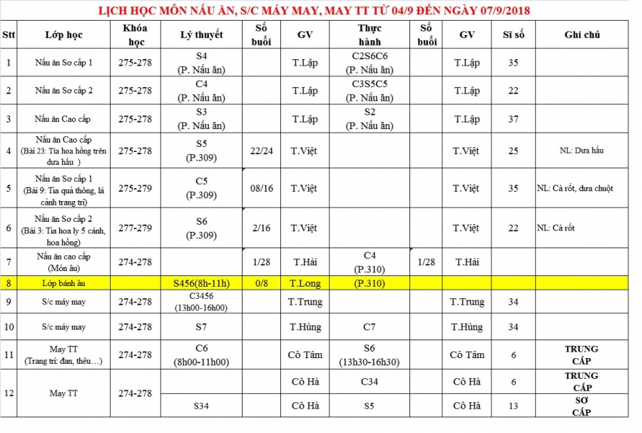 Các bạn học sinh mới ngành Lớp bánh Âu, Lớp Tin học Cao Đẳng chú ý: mang giấy vào lớp đến gặp giáo viên trước giờ vào lớp 20 phút để nhận lớp.