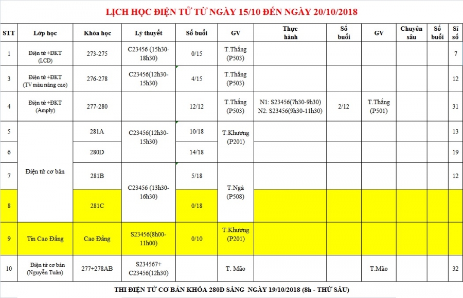 **THI ĐIỆN TỬ CƠ BẢN KHÓA 280D SÁNG NGÀY 19/10/2018 (8h - THỨ SÁU)