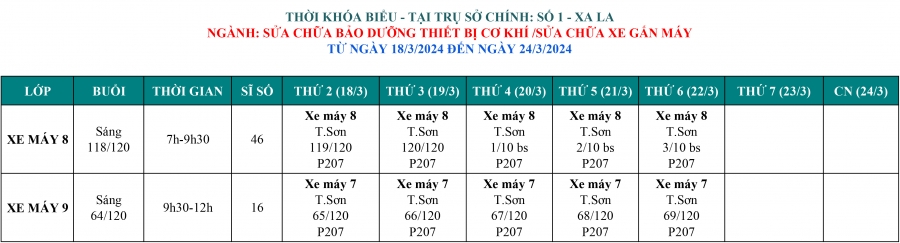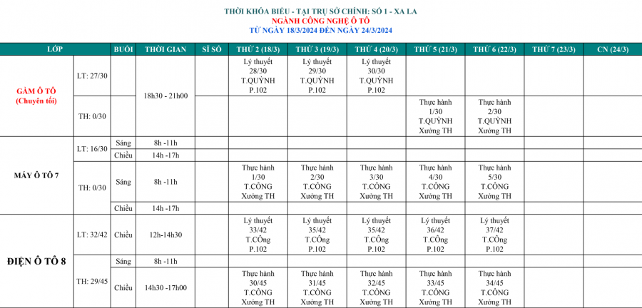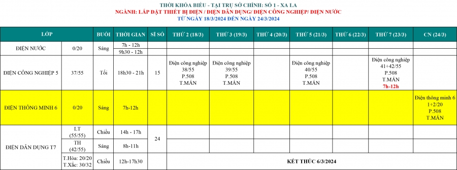 THÔNG BÁO LỊCH HỌC TỪ 18/3/2024 ĐẾN NGÀY 24/3/2024