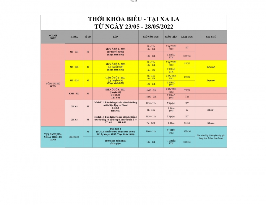 Các bạn chú ý đọc kỹ lịch học và phần ghi chú cho các lớp để hiểu rõ hơn về lịch học.