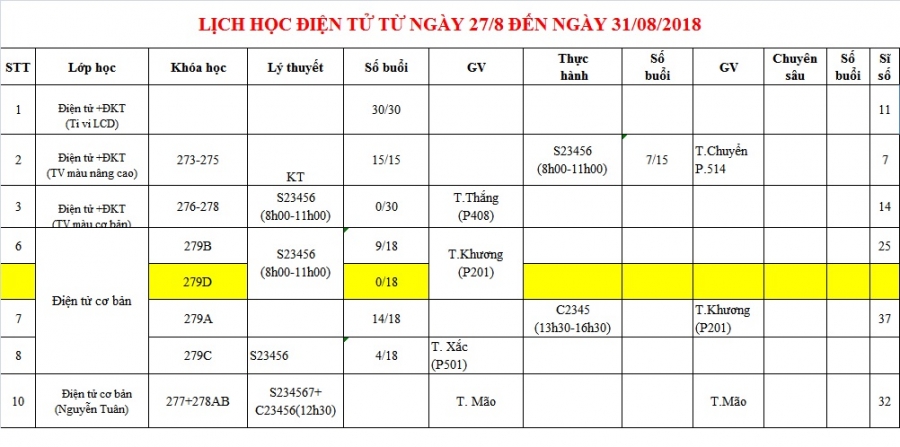 Thi điện tử cơ bản khóa 279A chiều ngày 30/8/2018 (13h30 - thứ năm)