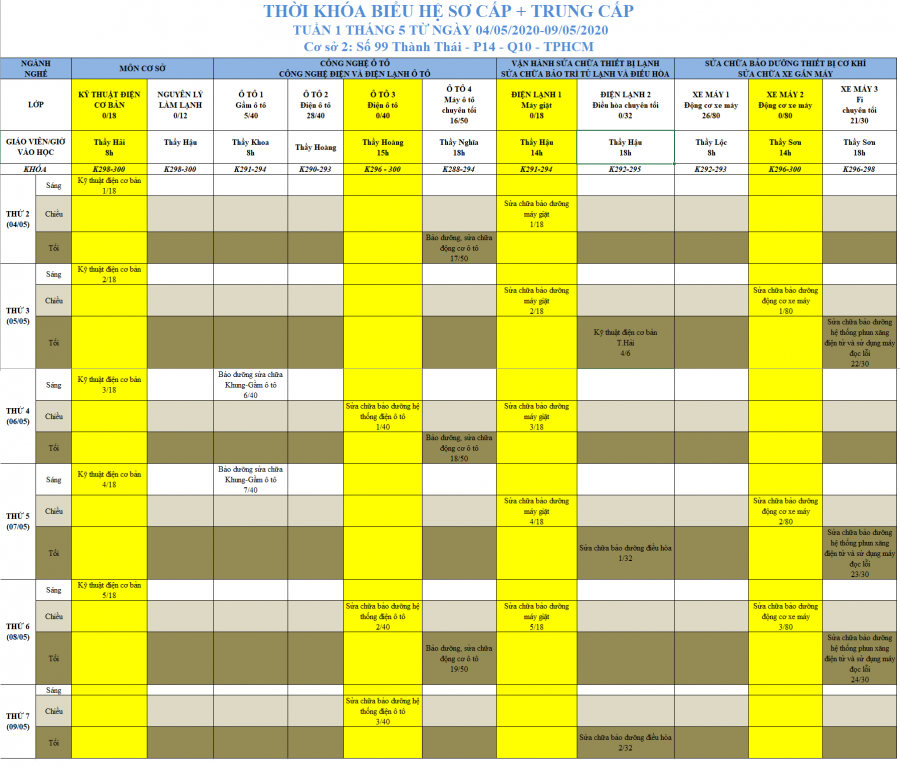 Đợt 1: ngày 4/5/2020 (50% các lớp đang học tại trường - có lịch học cụ thể trong bài viết này)