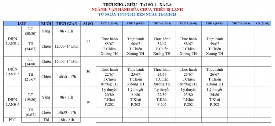 THÔNG BÁO LỊCH HỌC TỪ NGÀY 15/05/2023 ĐẾN NGÀY 21/05/2023