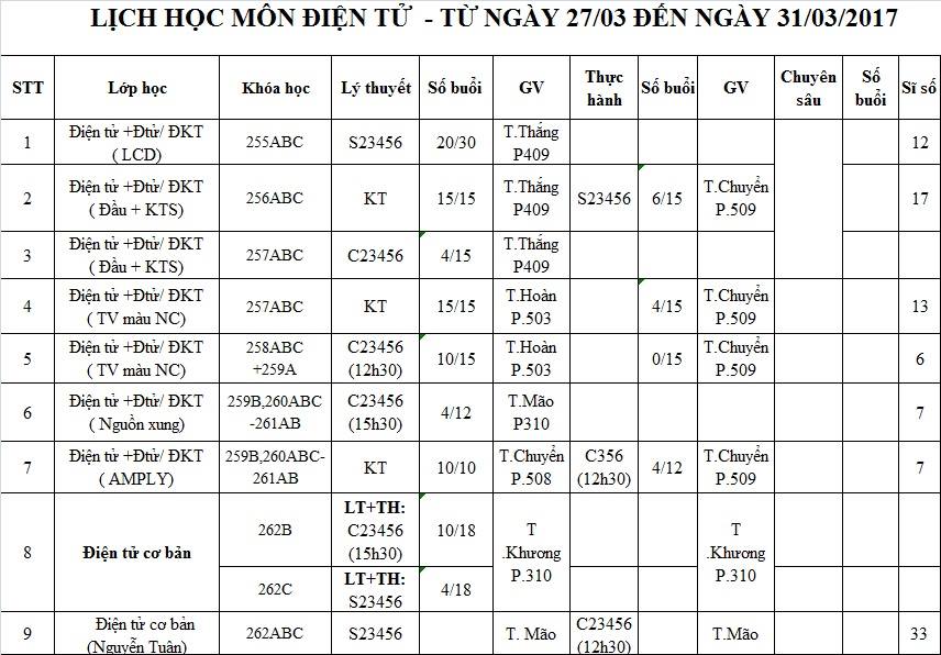 THÔNG BÁO LỊCH HỌC TỪ NGÀY 27/03 ĐẾN 31/03