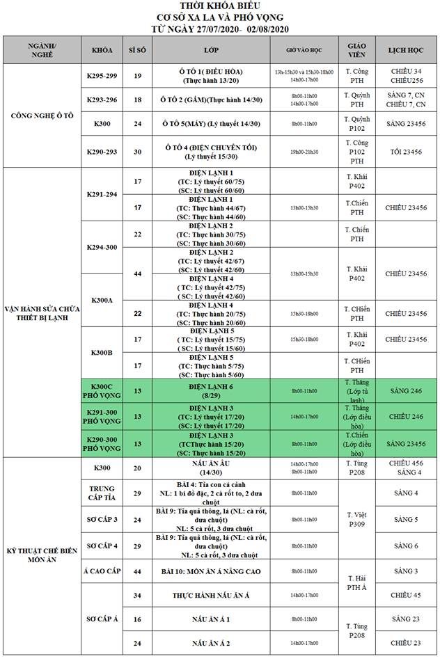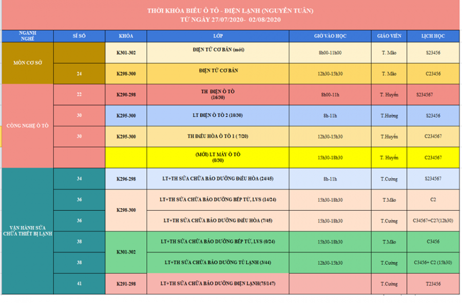 Thông Báo Lịch Học Tuần Mới Từ Ngày 27/07 Đến 02/08/2020