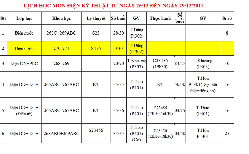 Tuần này có các lớp chuyên ngành mới sau: ĐIỆN LẠNH, ĐIỆN NƯỚCCÁC BẠN NGÀNH ĐIỆN NƯỚC CHÚ Ý: DO CÓ MỘT VÀI THAY ĐỔI, LỚP ĐIỆN NƯỚC MỚI SẼ BẮT ĐẦU HỌC TỪ 8/1/2018. CÁC BẠN CHÚ Ý LỊCH ĐỂ SẮP XẾP THỜI GIAN ĐI HỌC NHÉ!