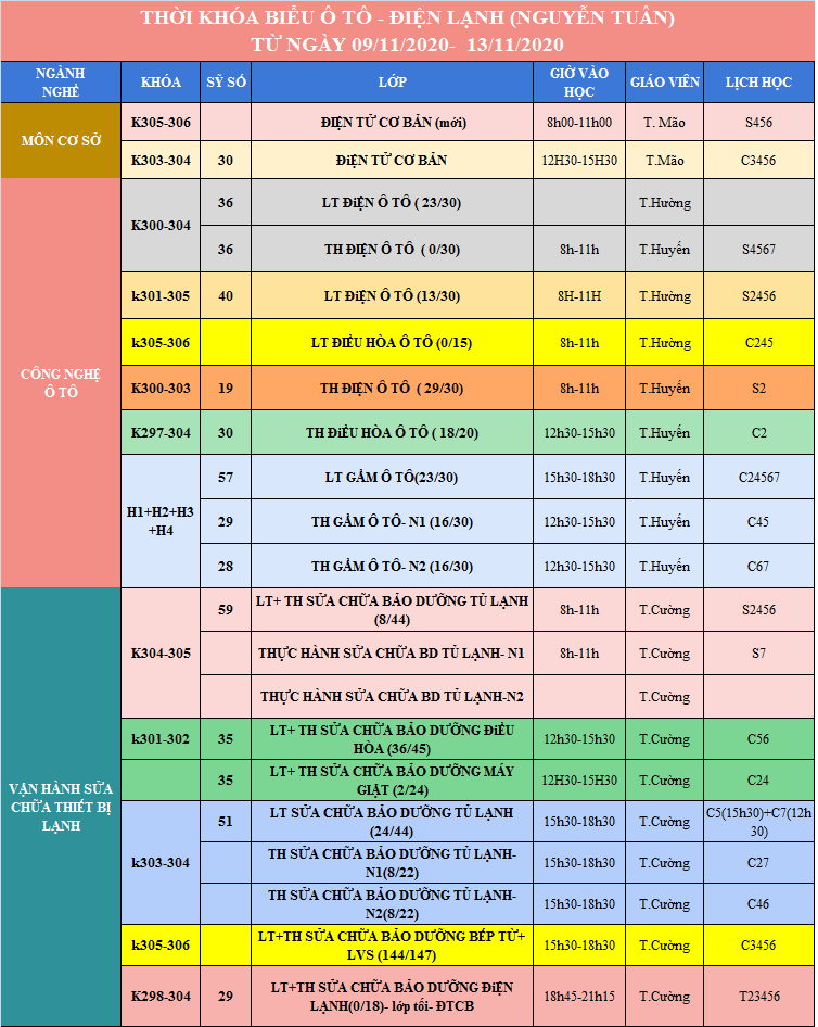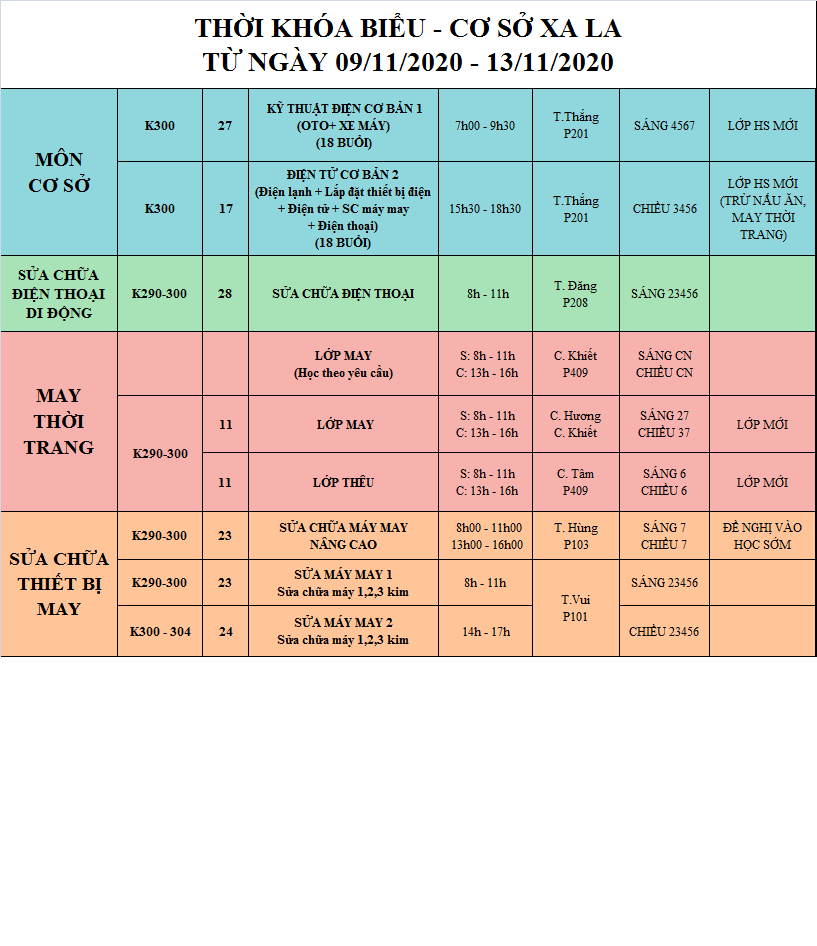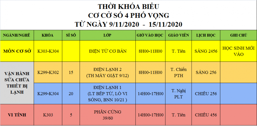 THÔNG BÁO LỊCH HỌC TUẦN MỚI TỪ NGÀY 09/11/2020-15/11/2020.