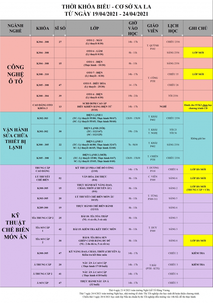 THÔNG BÁO LỊCH HỌC TUẦN MỚI TỪ NGÀY 19/04/2021-24/04/2021