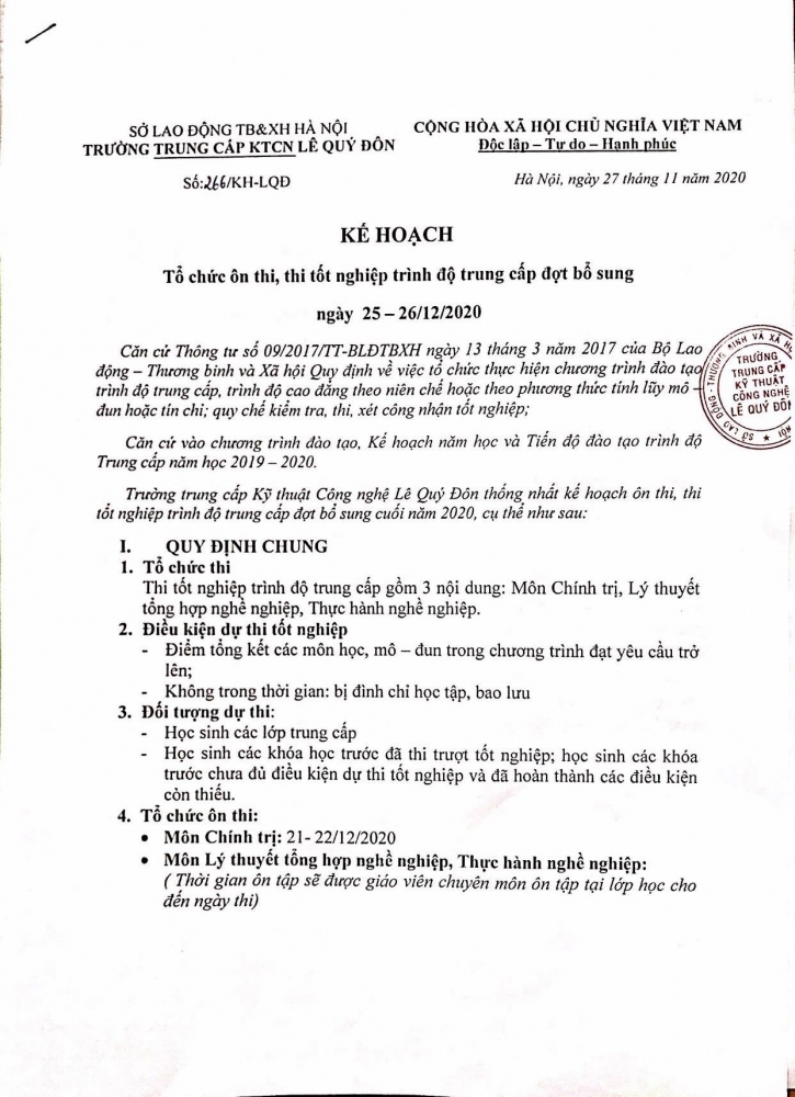 THÔNG BÁO LỊCH THI TỐT NGHIỆP THÁNG 12/2020