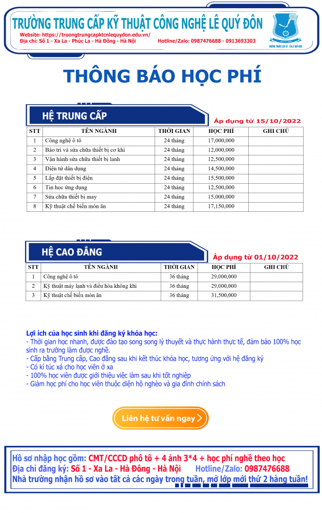 Cơ sở 1: Số 1 - Xa La - Hà Đông (Đối diện bệnh viện 103) / Hotline 24/7: 098.747.6688 - 0913 693 303