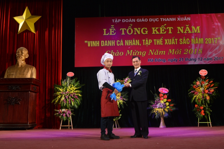 Tại buổi lễ tổng kết năm học ngày 21.12.2017 bên cạnh những nhiệm vụ của năm học mới Trung tâm dạy nghề Thanh Xuân có những phần quà , bằng khen dành tặng cho các bạn học viên có thành tích xuất sắc trong năm học vừa qua.Tần A Hảng – học viên lớp đầu bếp cao cấp